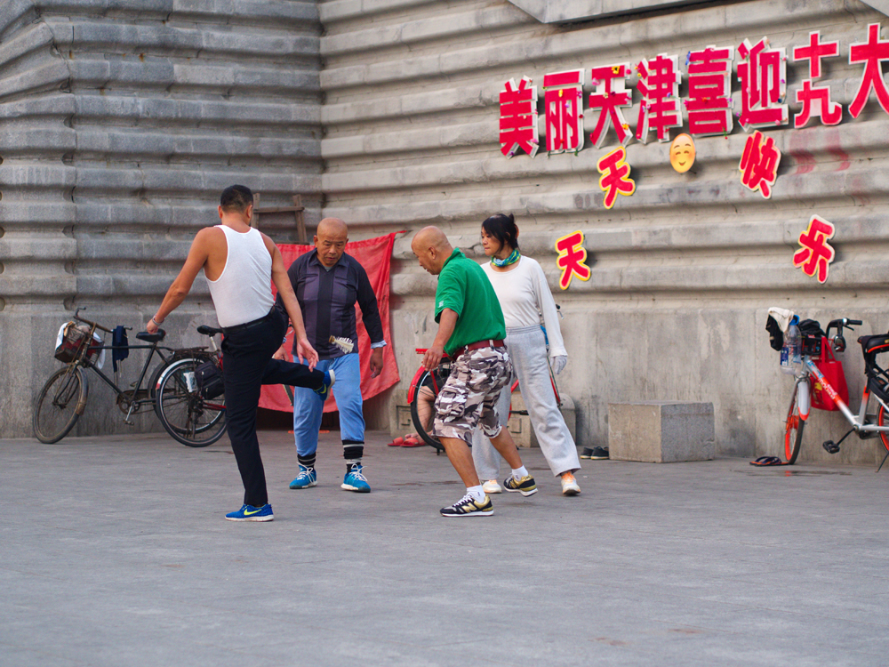 В отличие от традиционной игры в волан на тренировке шаолиньский футбол используется небольшой поролоновый мячик.